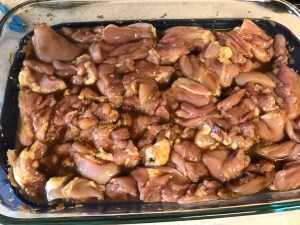 In a baking dish, combine the marinade ingredients. Add chicken.